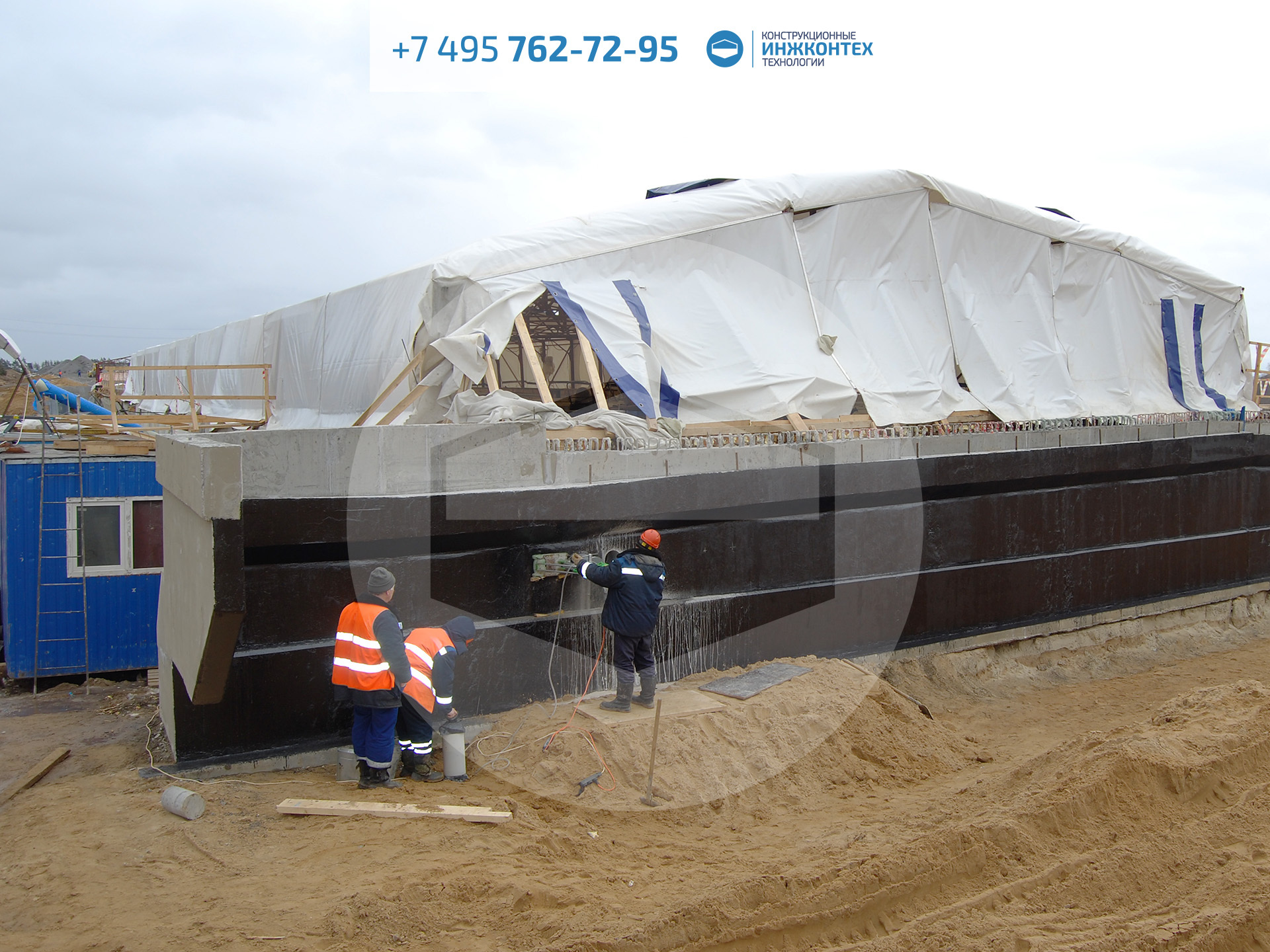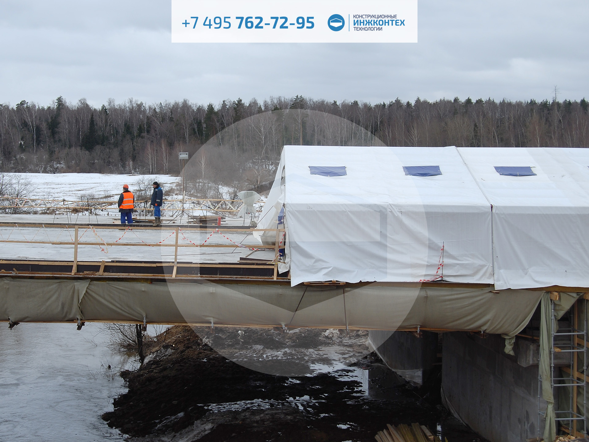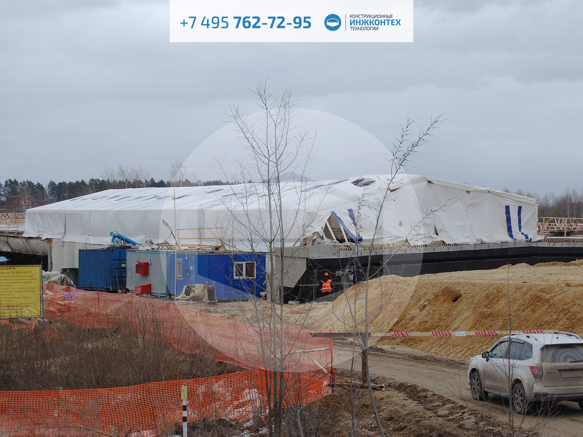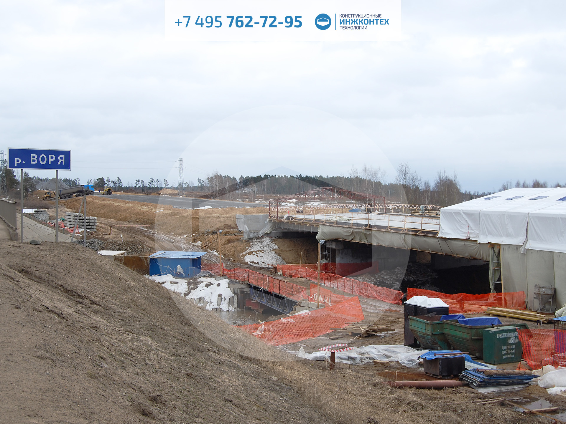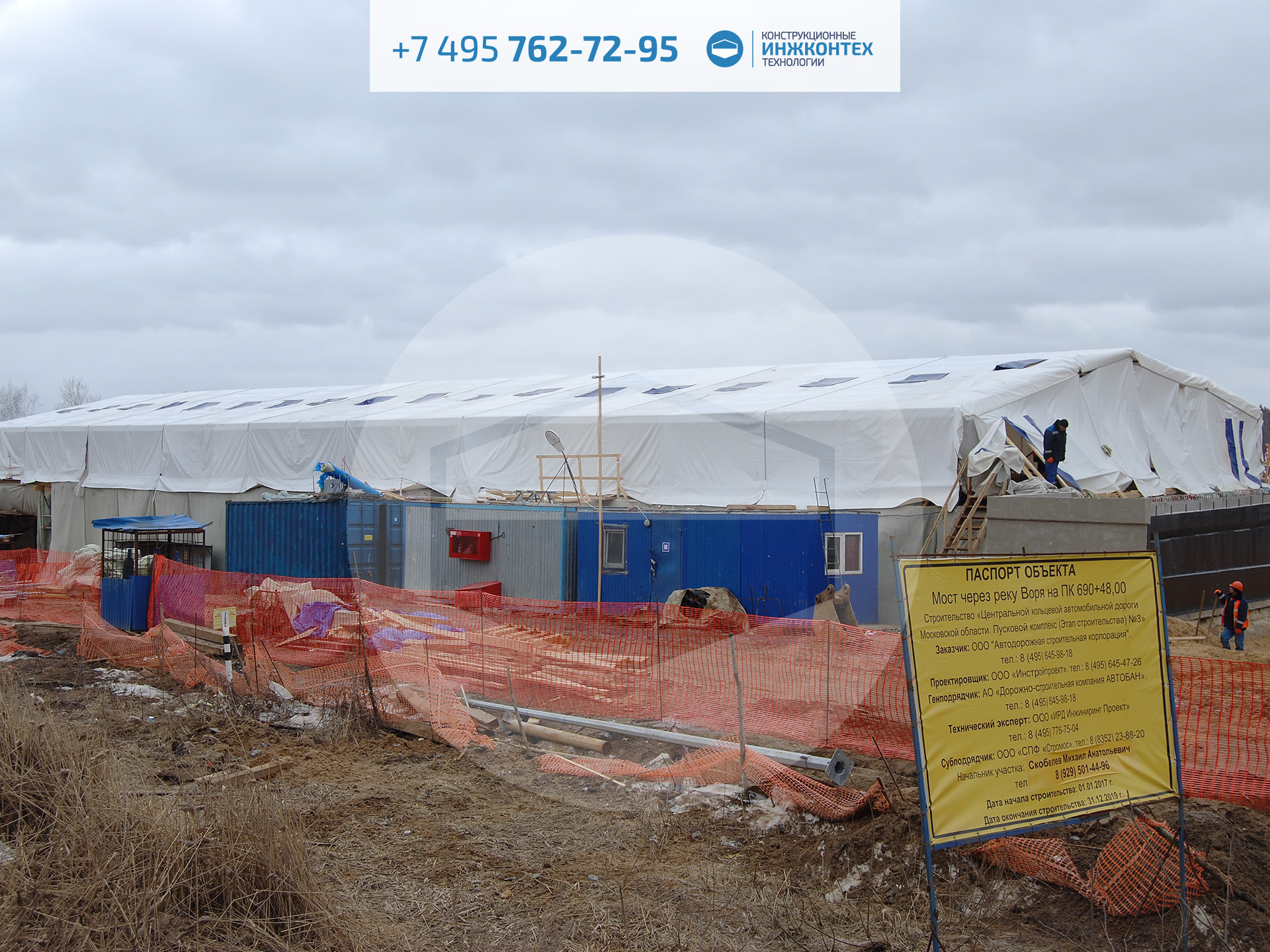 Строительный тепляк 15×60×2,2м (ЦКАД, р. Воря, 2018)
