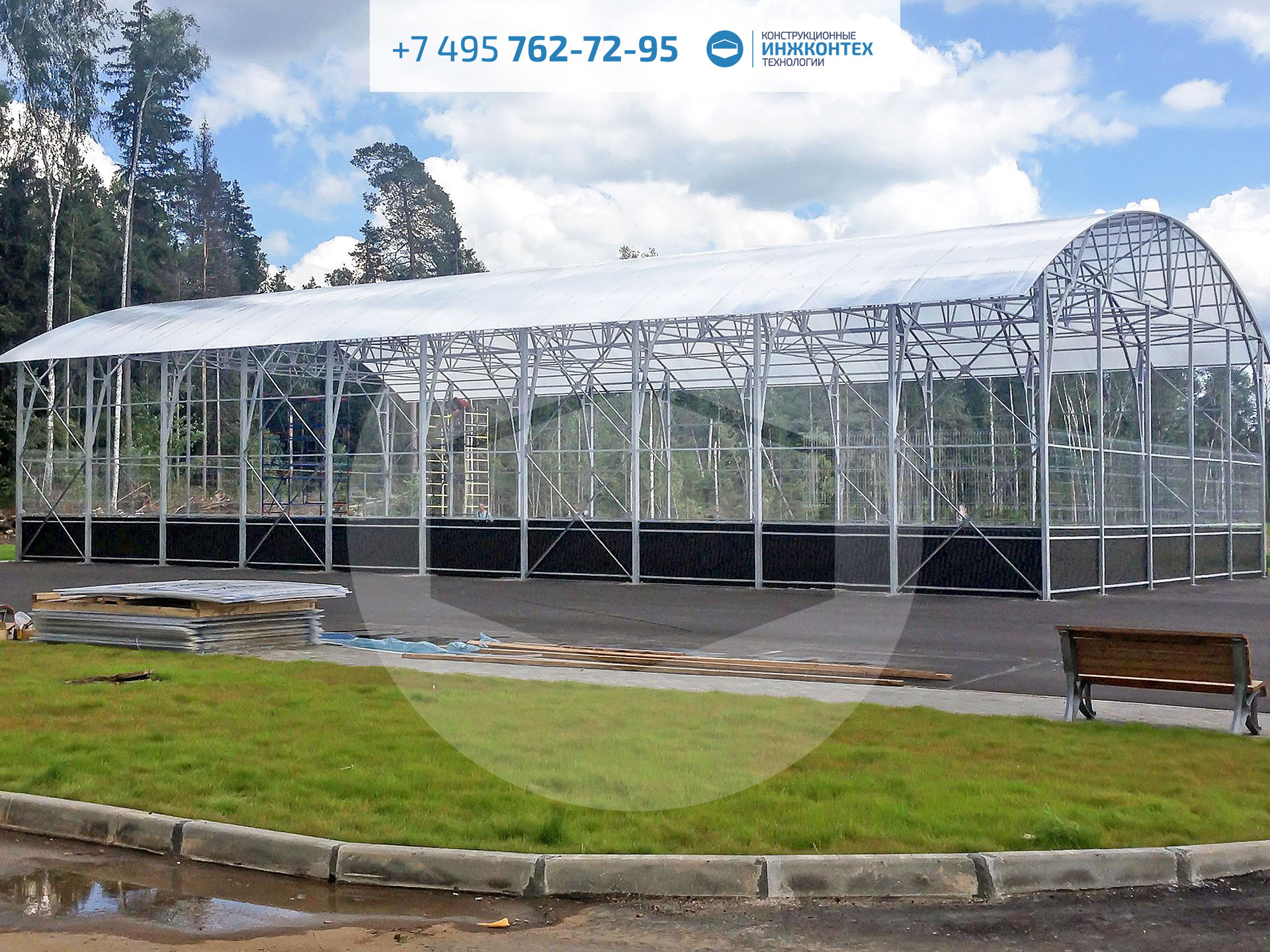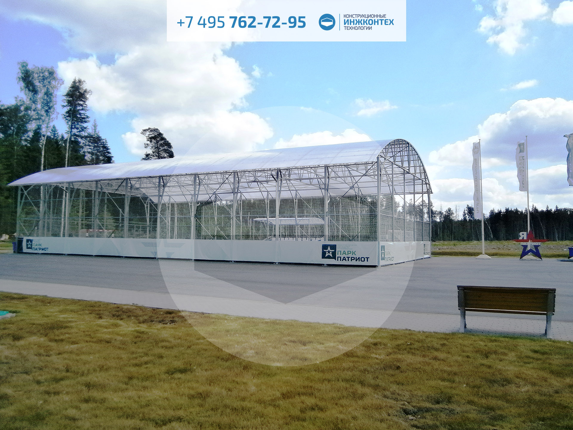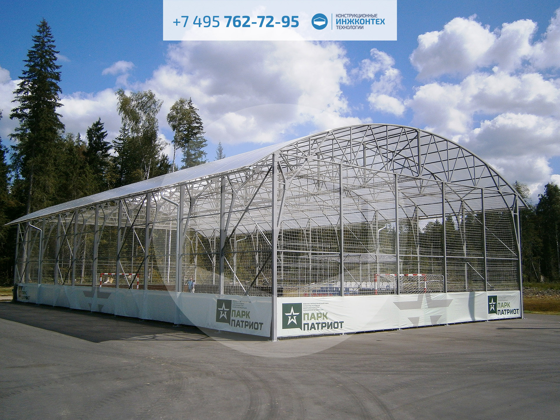 Навес из поликарбоната 15×30×6м (Парк Патриот, 2016)