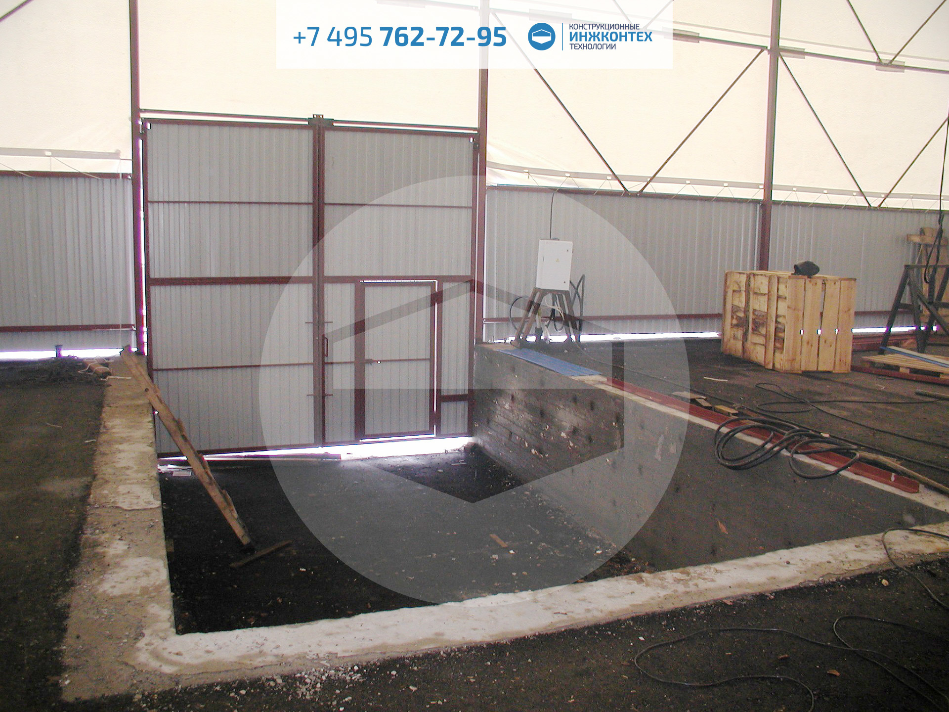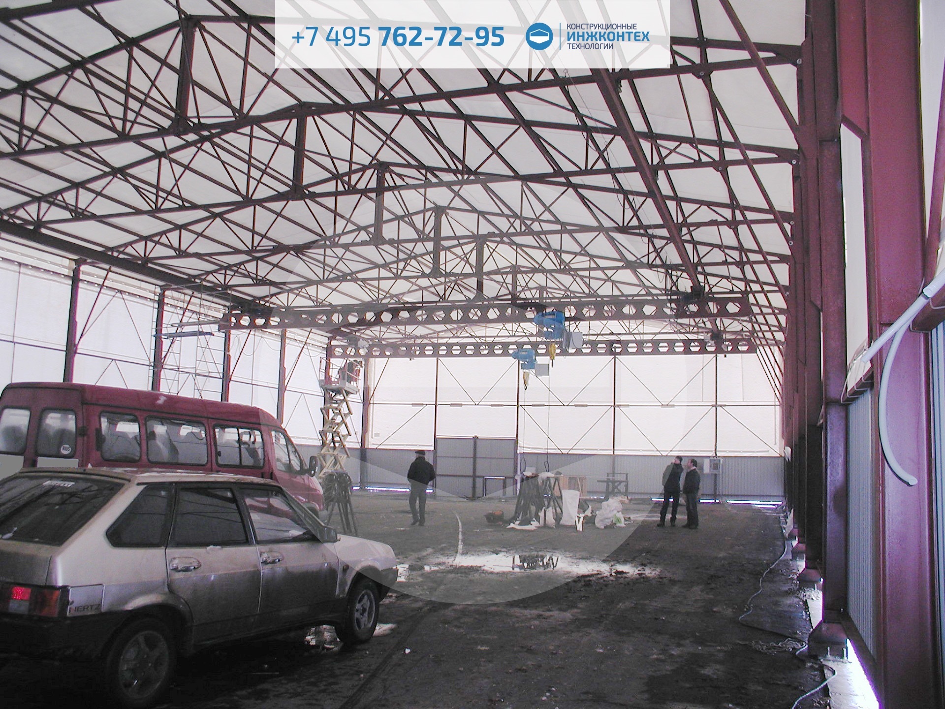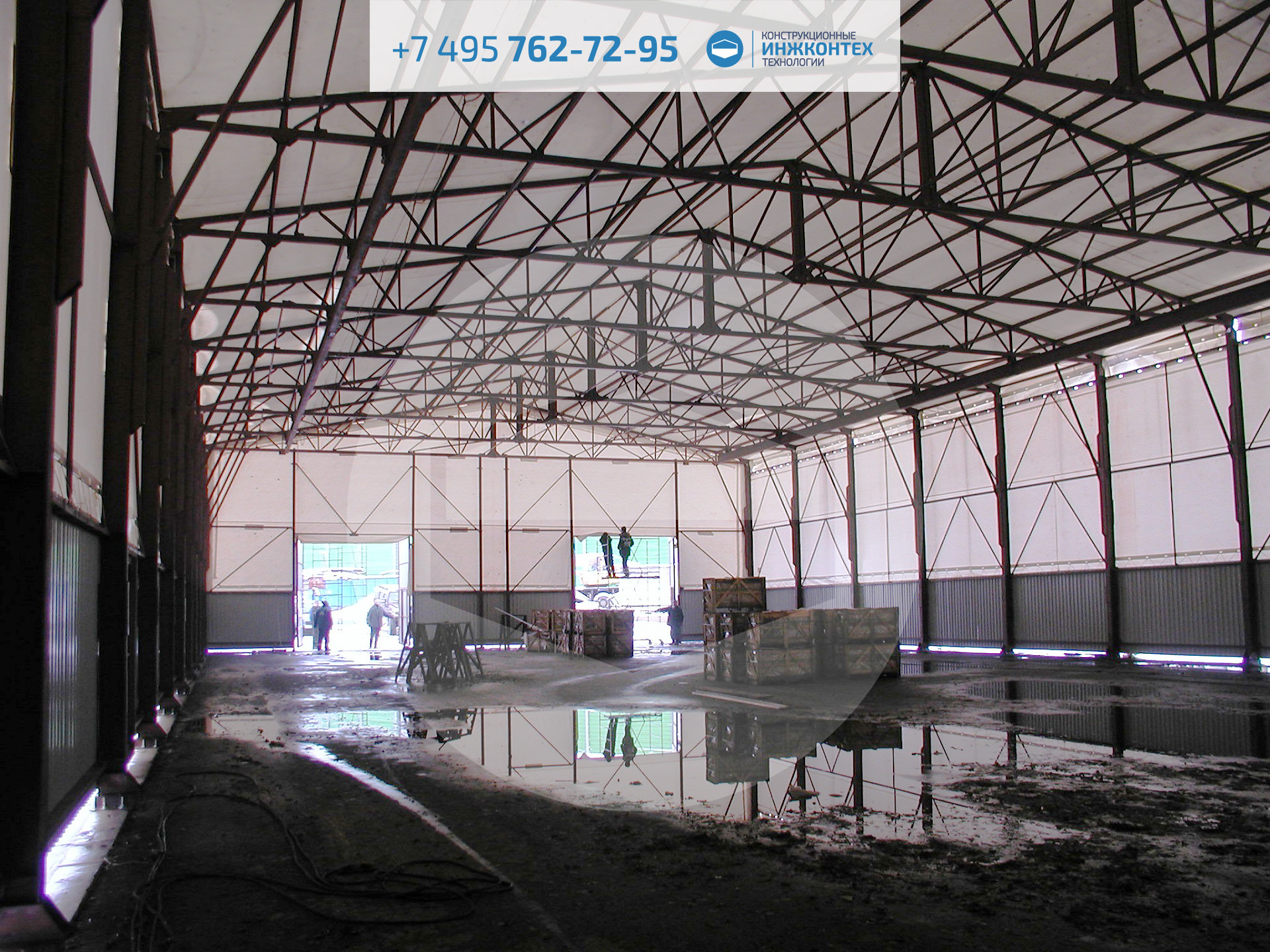 Тентовый склад 20×80×7м с ПТУ (Осташковское ш., 2009)